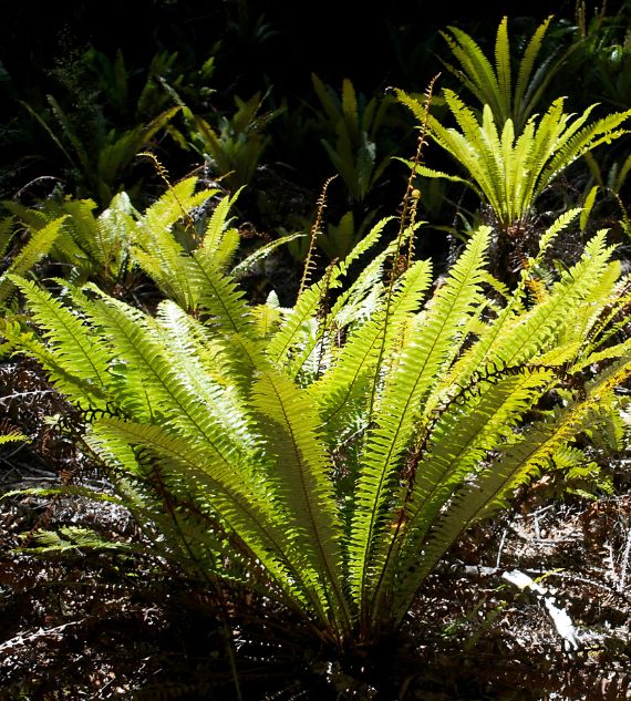 Pygmy Tree Fern (Blechnum gibbum) is a compact, slow-growing fern with a tropical palm-like appearance. It features a short, stout trunk topped with a rosette of bright green, arching fronds. Ideal for indoor spaces or shaded garden corners, this fern thrives in humid conditions with indirect light and consistently moist, well-drained soil. Its neat, symmetrical shape makes it a favorite for ornamental display.
