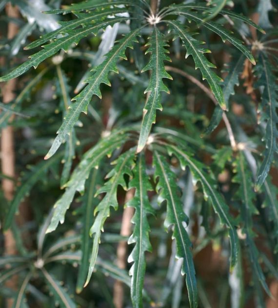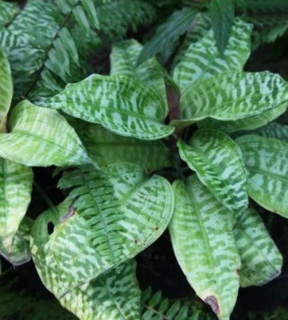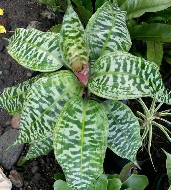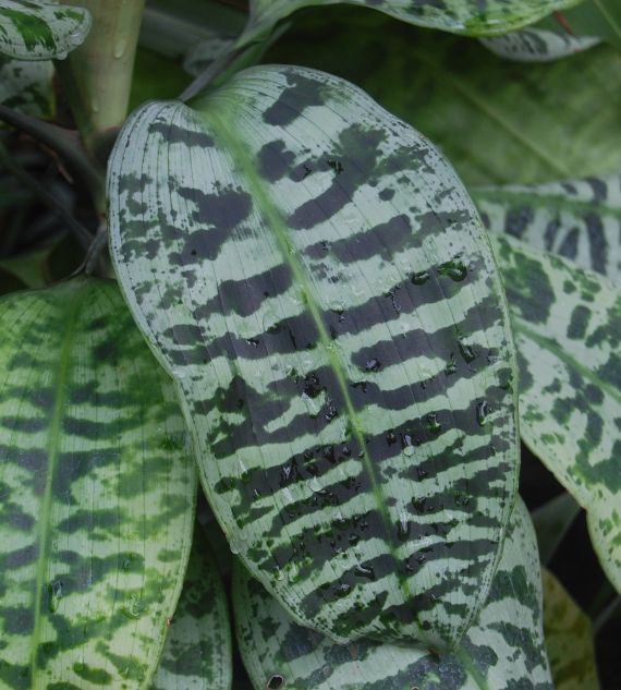 Dracaena goldieana, also known as the Gold Dust Dracaena, is a striking foliage plant with broad, dark green leaves beautifully patterned with silvery-green stripes. Compact and easy to care for, it thrives in bright, indirect light and adds a tropical touch to indoor spaces.
