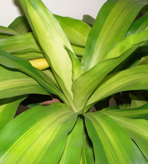Dracaena fragrans 'Massangeana', commonly known as the Cornstalk Plant, features long green leaves with a central yellow stripe, resembling corn foliage. It's a popular, air-purifying houseplant that thrives in low to bright indirect light and requires minimal maintenance.
