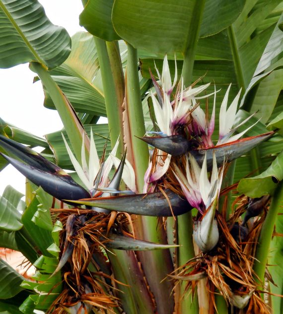 Strelitzia nicolai, commonly known as White Bird of Paradise or Natal Wild Banana, is a bold tropical plant with large, banana-like leaves and striking white and blue flowers. Perfect for creating a lush, exotic look in gardens or spacious indoor areas.