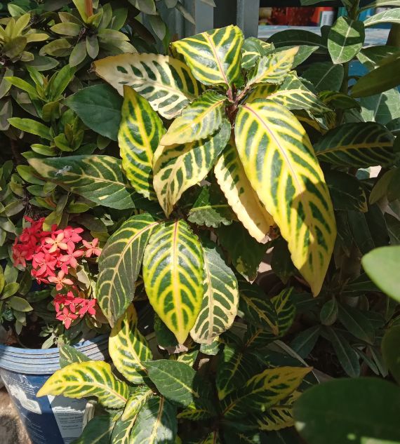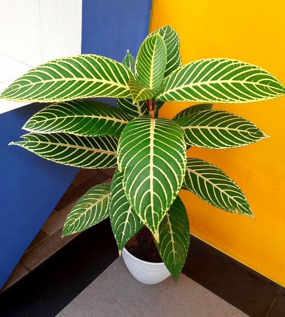 Tricolor Sanchezia Plant is a vibrant ornamental plant known for its colorful foliage featuring green leaves with bold yellow veins and hints of red or pink on the stems and undersides. It thrives in warm, humid conditions with bright, indirect light and adds a tropical flair to indoor or shaded outdoor areas.