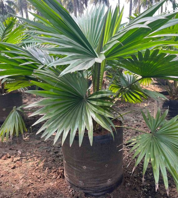Livistona rotundifolia, commonly known as Table Palm, Footstool Palm, or Round Leaf Fan Palm, is a compact tropical palm with glossy, circular fan-shaped leaves. Ideal for indoor decor or shaded gardens, it adds a lush, elegant touch to any space.