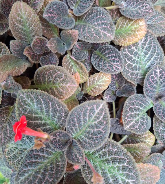 Episcia Cuperata is a trailing plant known for its velvety, bronze-green leaves with coppery tones and small tubular flowers, making it ideal for hanging baskets and shaded indoor spaces. Green Episcia plants offer lush foliage and vibrant color variations, thriving best in warm, humid environments with indirect light.