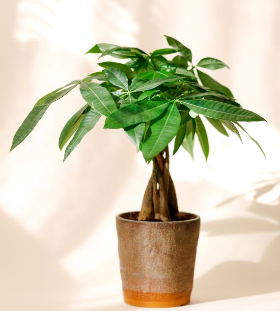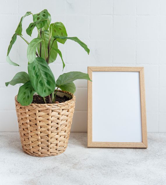 Maranta Leuconeura ‘Kerchoveana’, commonly known as the Prayer Plant, features striking green leaves with darker blotches. It folds its leaves upward at night, resembling praying hands, and thrives in low to medium light indoors.