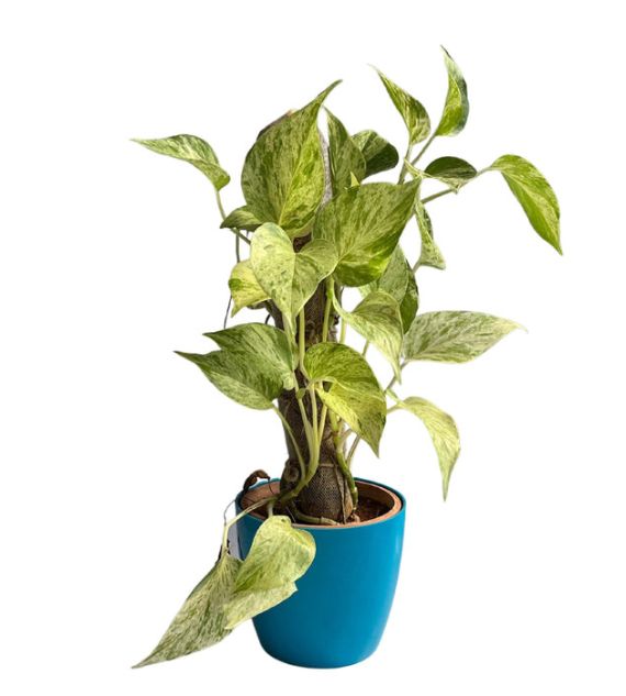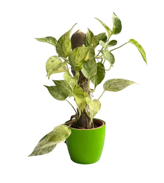 Devil’s Ivy, also known as Golden Pothos or Money Plant (Epipremnum aureum), features heart-shaped green leaves with golden variegation. It's a fast-growing, low-maintenance indoor vine that purifies air and thrives in low to bright indirect light.