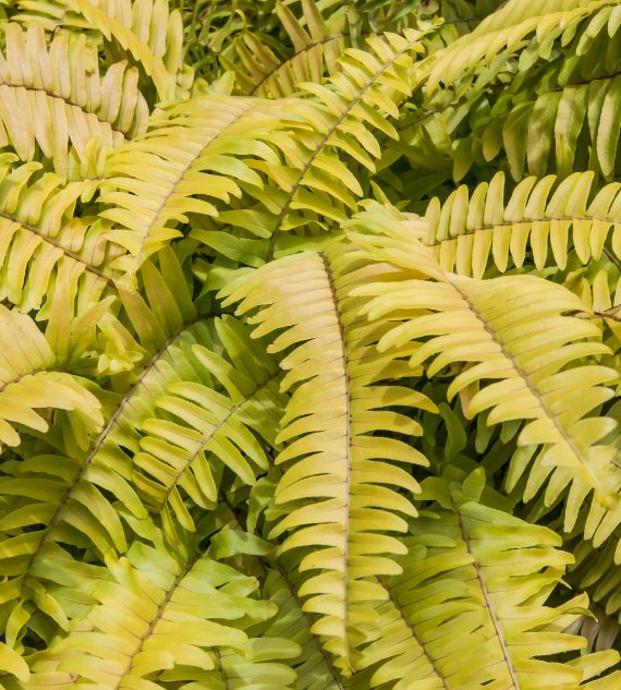 Gold Fern (Pityrogramma chrysophylla) is a striking fern with bright green fronds dusted in golden-yellow powder on the undersides. This eye-catching plant thrives in humid, shaded environments and adds a tropical, decorative flair to indoor and shaded garden spaces.