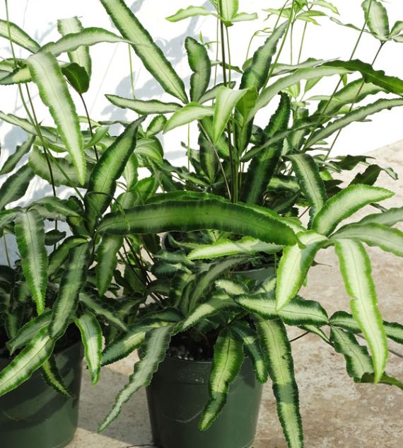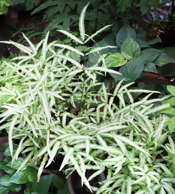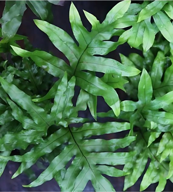 Polypodium aureum, Doryopteris, and other thick-leaf ferns with rhizomes are unique tropical ferns known for their fleshy, creeping rhizomes and distinctive foliage. Polypodium aureum (Blue Star Fern) stands out with its blue-green, wavy fronds and easy-care nature, thriving in indirect light and humid conditions.