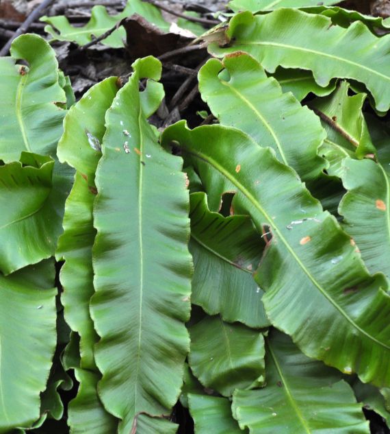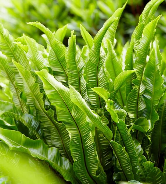 Phyllitis scolopendrium, also known as Hart's Tongue Fern, features glossy, strap-shaped fronds that grow in a tidy rosette, adding a lush, sculptural look to shaded gardens. Wavy Margin Bird’s Nest Fern boasts bright green, rippled fronds that unfurl from a central rosette, giving a tropical feel and thriving in humid indoor or shaded outdoor spaces.