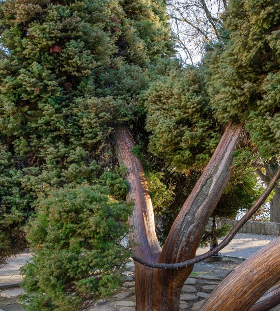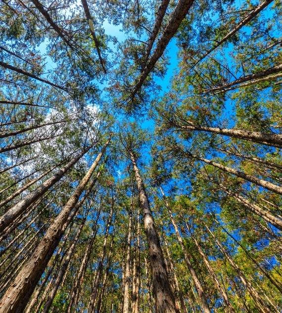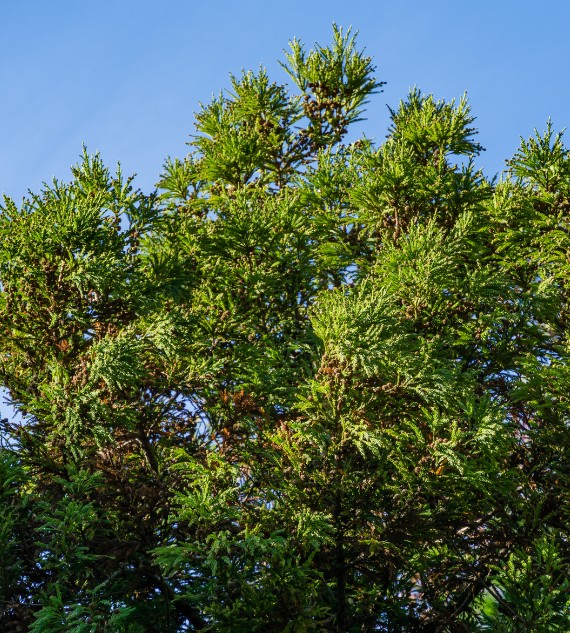 Japanese Cedar trees (Cryptomeria japonica) are tall, evergreen conifers native to Japan, known for their soft, needle-like foliage and attractive reddish-brown bark. They can grow up to 70 feet tall and are often used in landscaping for their graceful, pyramid-like shape. These trees thrive in moist, well-drained soil and are popular for both ornamental and timber purposes.