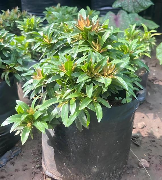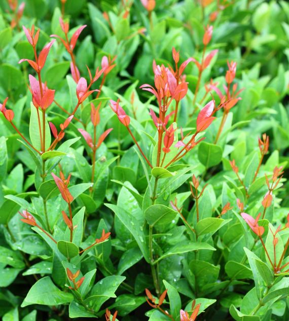 Syzygium campanulatum 'Mini Dwarf' is a compact, evergreen shrub known for its dense, glossy foliage and reddish new growth. It is often used in hedges, borders, or as a decorative plant in gardens and landscapes due to its neat, dwarf form and ease of maintenance.