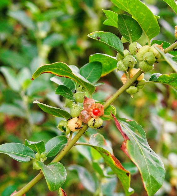 Ashwagandha (Withania somnifera) is a medicinal herb widely used in traditional Ayurvedic medicine for its adaptogenic properties. Known for reducing stress, improving cognitive function, and boosting immunity, it is also valued for its anti-inflammatory and antioxidant effects.