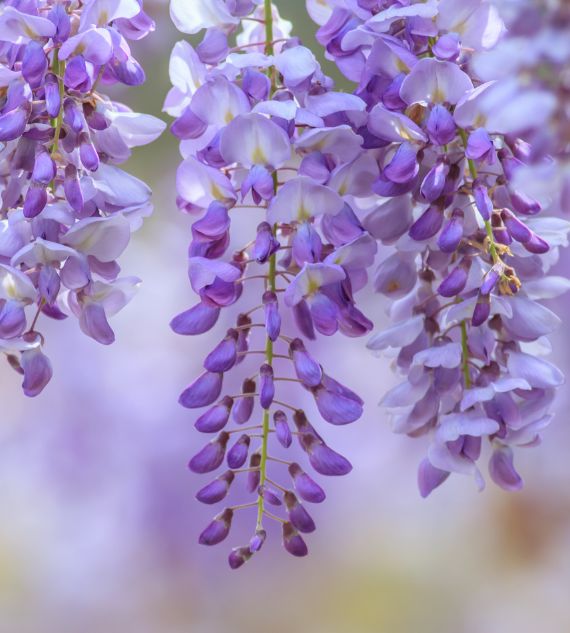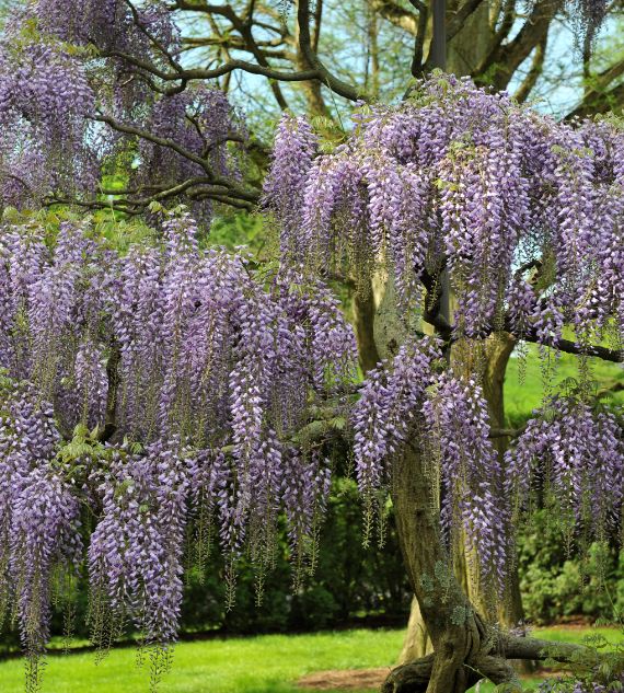 Wisteria chinensis, commonly known as Chinese Wisteria, is a deciduous climbing plant known for its cascading clusters of fragrant, violet-blue flowers. It is a popular ornamental vine, often grown on trellises or arbors, and is admired for its stunning spring blooms and vigorous growth.