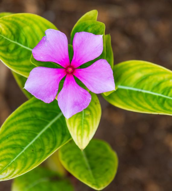 Variegated Periwinkle (Vinca minor variegated) is a hardy, evergreen ground cover with attractive green leaves edged in white or cream. It produces delicate, blue or lavender-colored flowers in spring and summer, making it popular for ornamental use in gardens. This plant thrives in shaded areas and is often used to control erosion or fill in spaces under trees and shrubs.