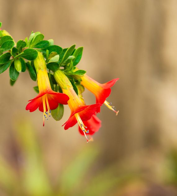 Trochetia boutoniana, the national flower of Mauritius, is a rare and endangered shrub known for its distinctive bell-shaped, reddish-orange flowers with white centers. It blooms from June to October and is found mainly on the slopes of Le Morne Brabant mountain. The plant holds cultural significance in Mauritius and is a symbol of resilience and natural beauty.