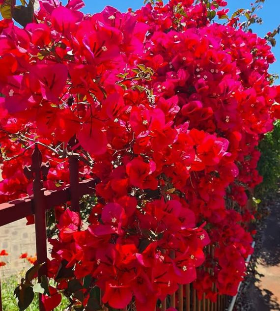 Bougainvillea Spectabilis Highway Red & Pink is a colorful climber that produces vibrant red and soft pink bracts, creating a striking contrast. It grows well in full sun and adds a lively touch to gardens, fences, and trellises with its abundant blooms.