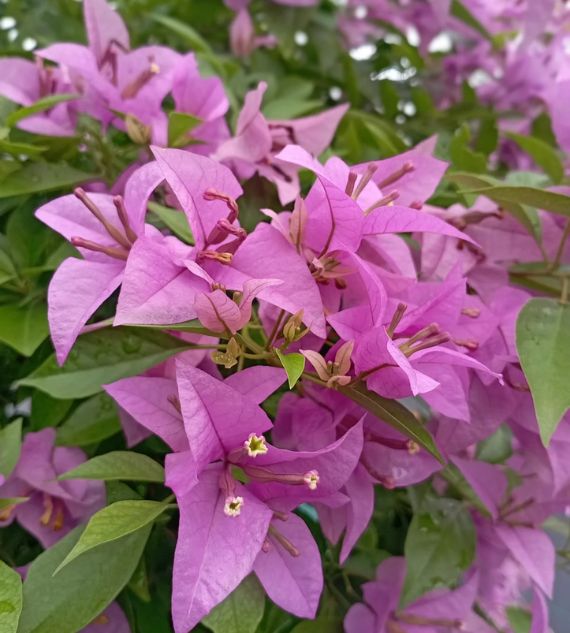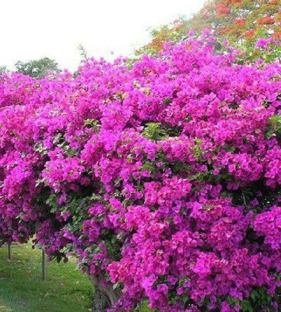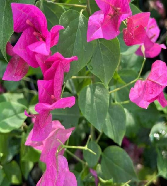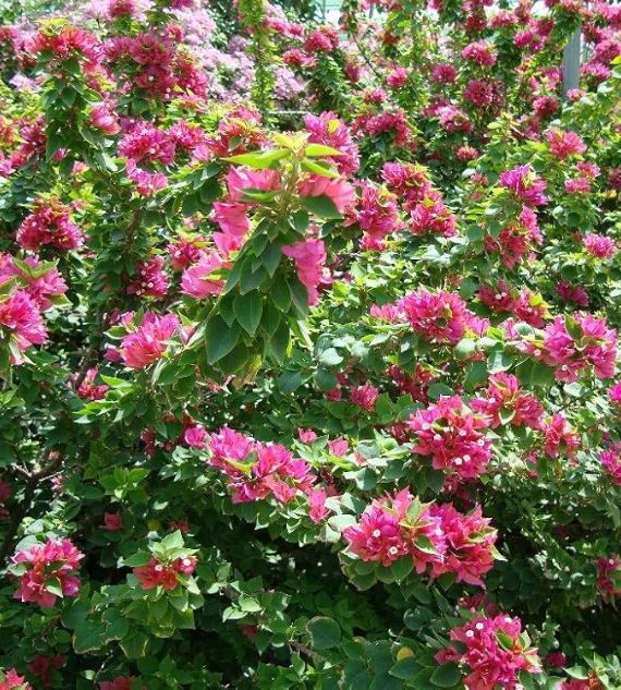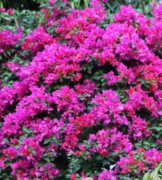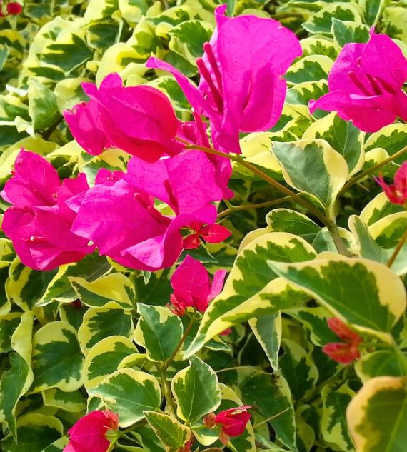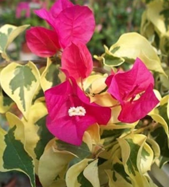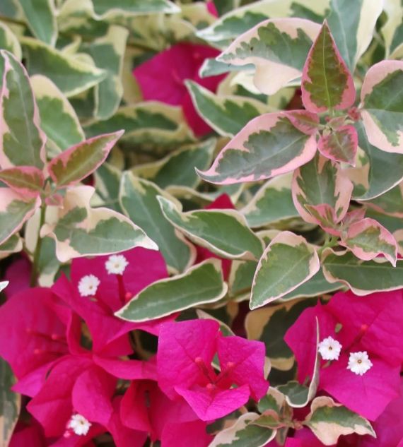 Bougainvillea glabra Sanderi is a compact, thornless variety with magenta to pink bracts, well-suited for containers and small gardens. Bougainvillea arborea has a tree-like growth form with fragrant flowers and is often cultivated for its ornamental and structural appeal.