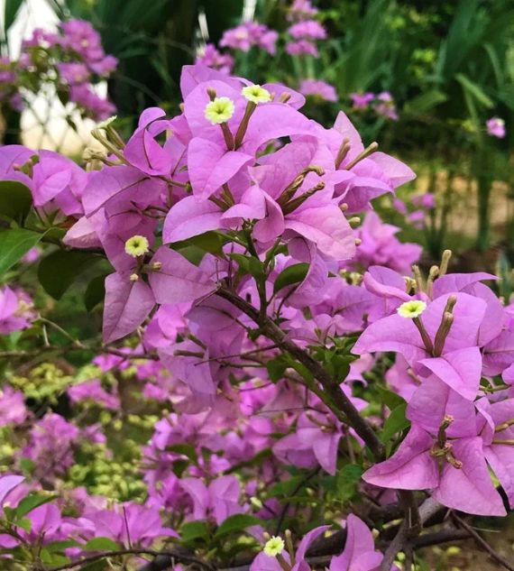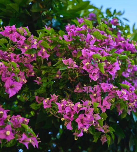 Bougainvillea Formosa is a lush variety with bold magenta to purplish bracts and a vigorous climbing habit, often used to create colorful garden canopies. Lilac varieties feature soft purple to lavender bracts and are prized for their gentle tones and suitability in both containers and open landscapes.