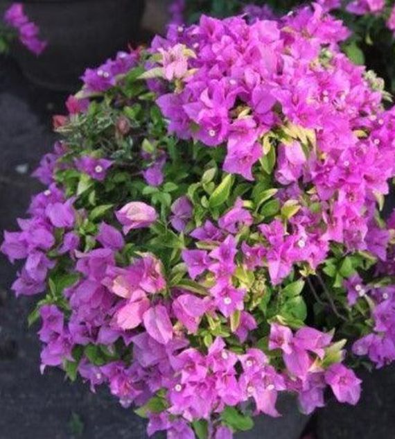 Bougainvillea glabra Deep Purple Compact is a small, bushy variety known for its intense purple bracts and manageable growth, ideal for pots or low hedges. The Pepper Flower plant, often referring to species like Capsicum or Piper, produces small flowers that precede pepper fruits and is commonly grown for culinary or ornamental use.
