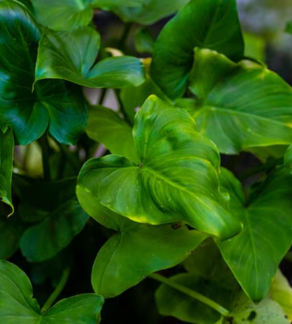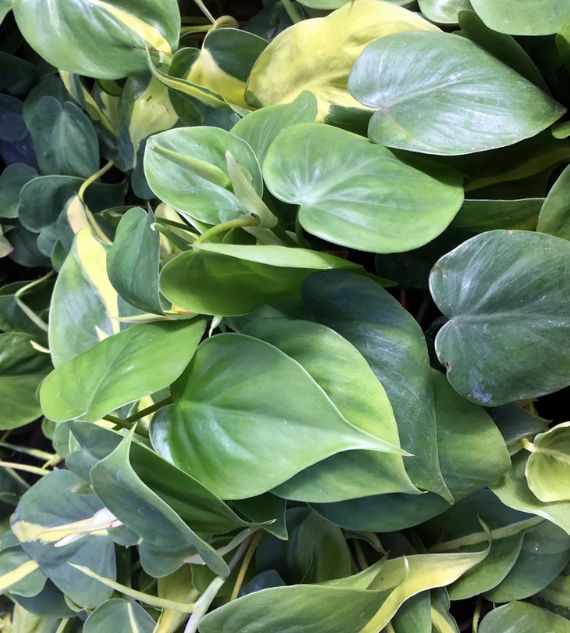 Variegated Philodendron (Philodendron scandens oxycardium variegatum), also known as Heart-leaf or Cordatum, features trailing vines with heart-shaped leaves splashed with shades of green, cream, and yellow. This easy-care, variegated variety adds a vibrant touch to indoor spaces and thrives in indirect light.