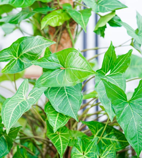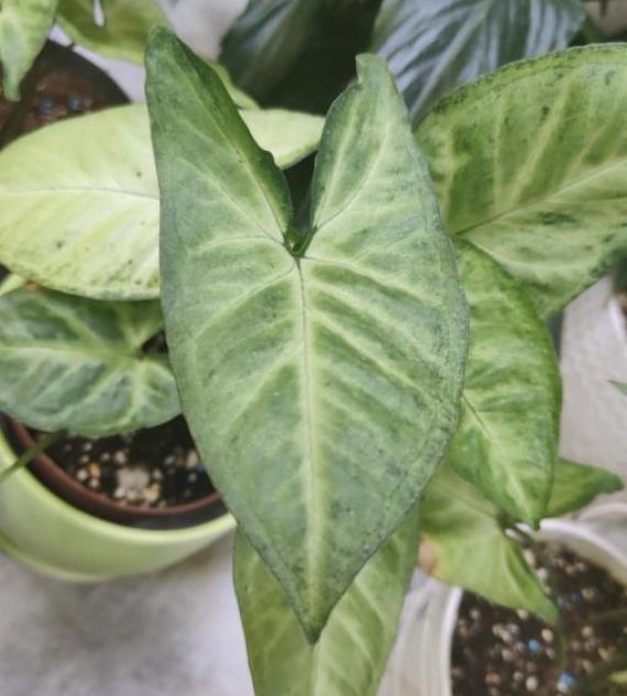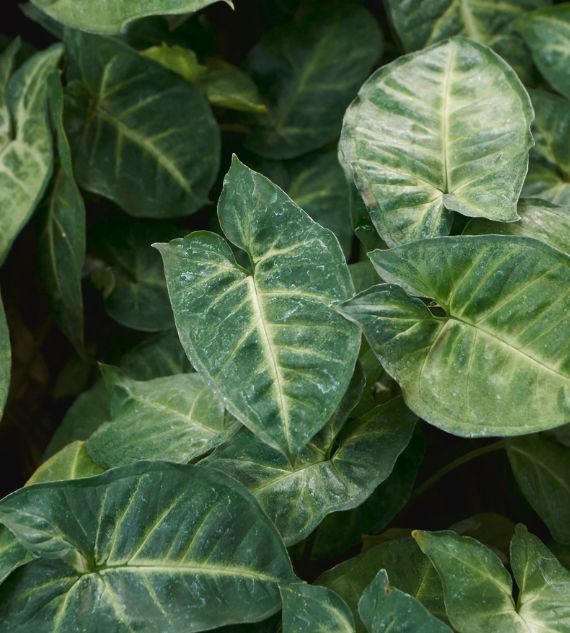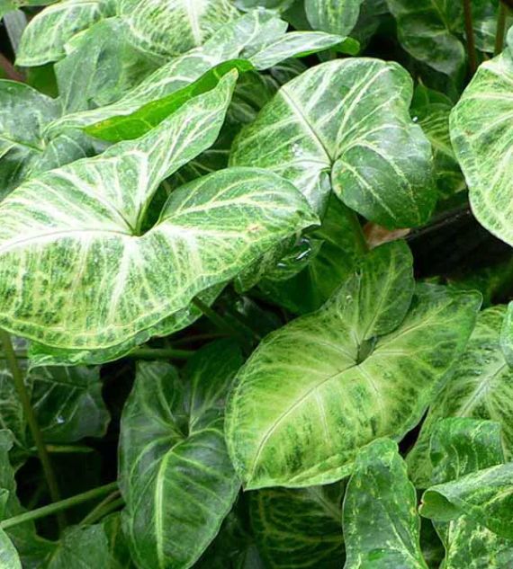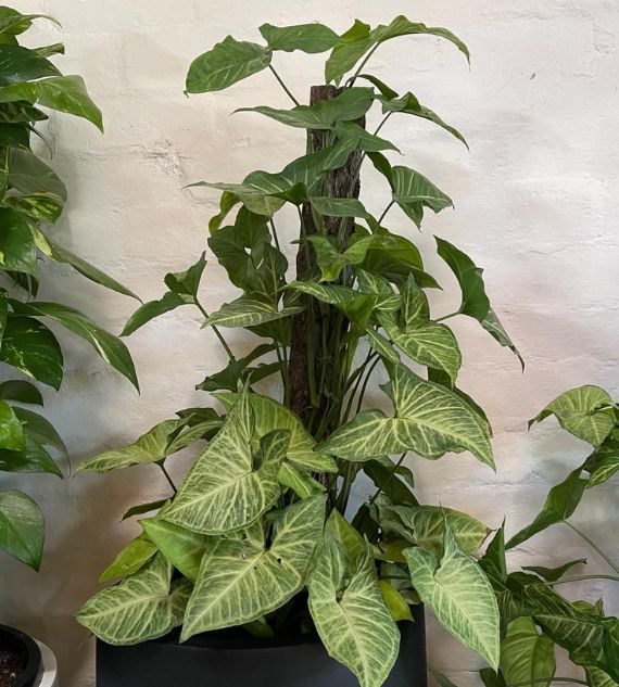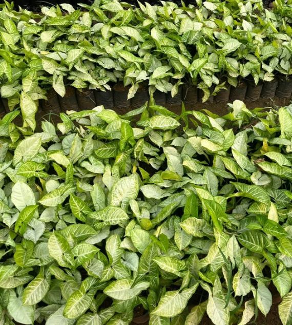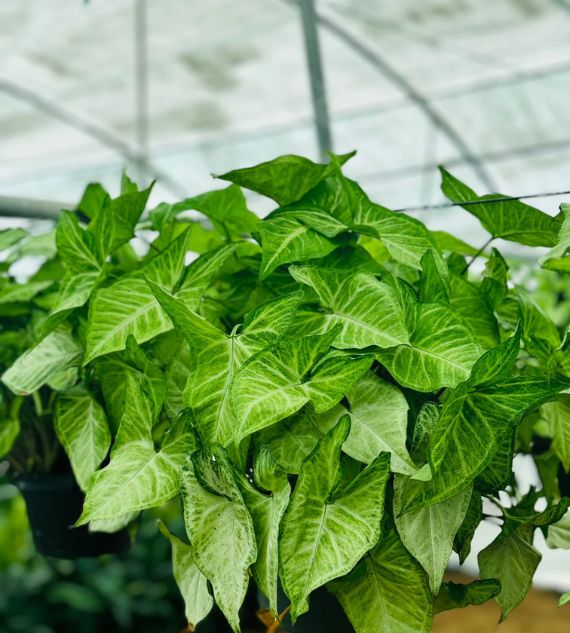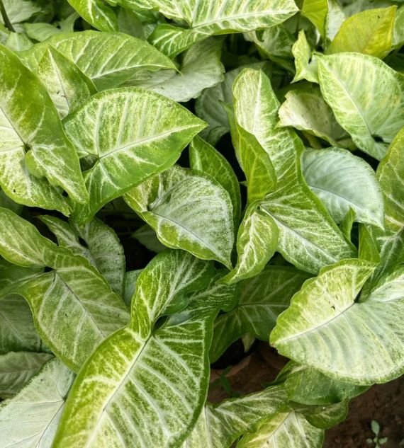 Syngonium podophyllum 'Albolineatum' is an elegant indoor plant with arrow-shaped leaves featuring silvery-white veins and a soft green background. It’s easy to grow, thrives in indirect light, and adds a touch of subtle sophistication to any indoor setting.