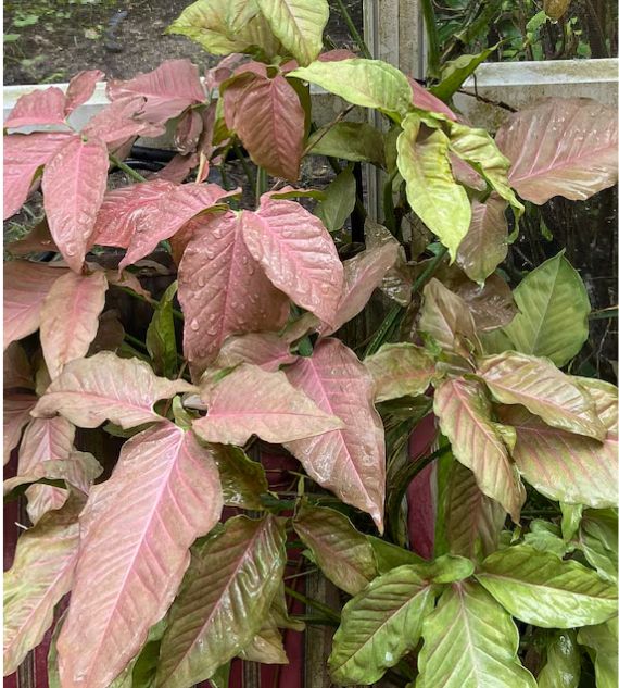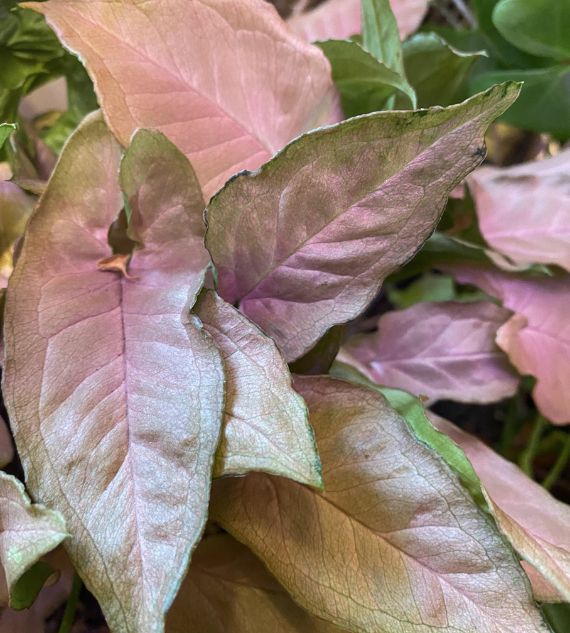 Syngonium podophyllum 'Bronze', also known for its new dark brown leaves, is a unique variety with rich, bronzy foliage that matures into deep green tones. Its striking color and easy-care nature make it a popular choice for adding warmth and texture to indoor plant collections.