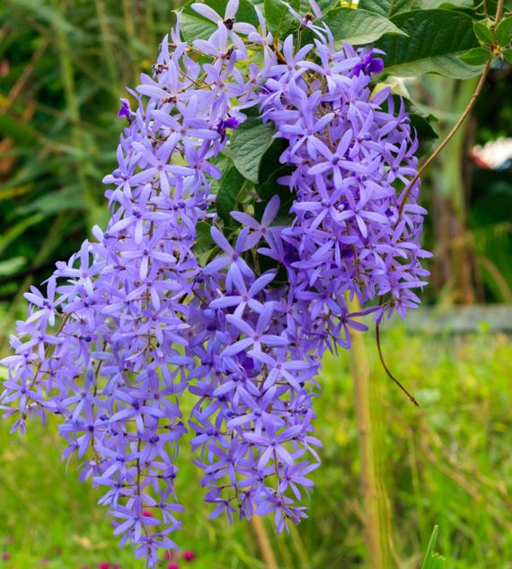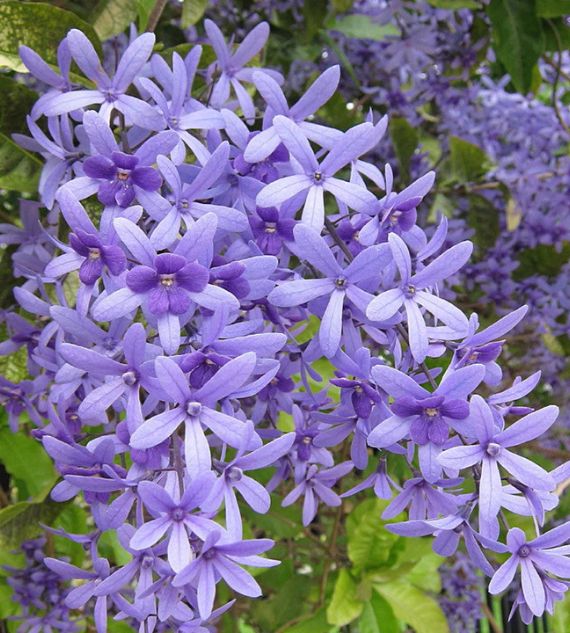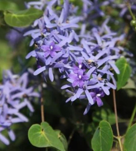 Petrea volubilis, commonly known as Purple Wreath or Sandpaper Vine, is a vigorous climber admired for its stunning, cascading clusters of violet-purple, star-shaped flowers. Its rough, sandpaper-like leaves and vibrant blooms make it a standout choice for arbors, fences, and sunny garden spaces.