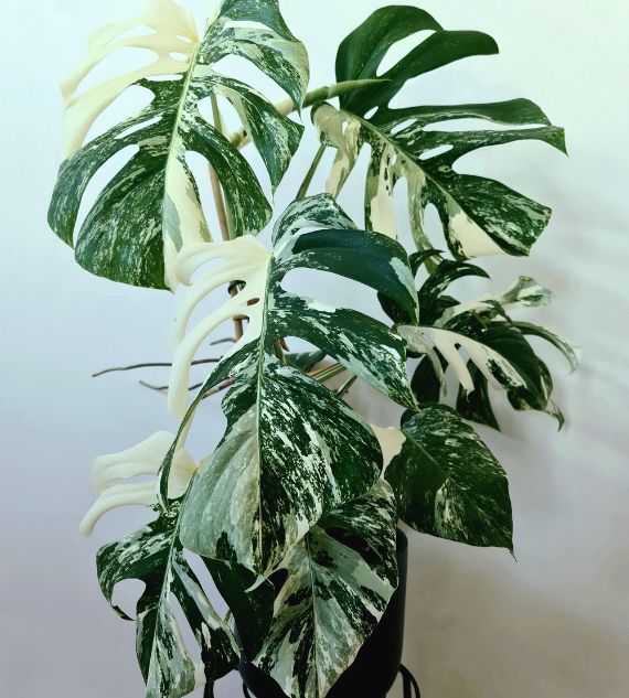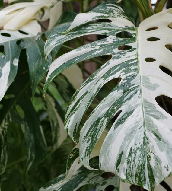 Variegated Monstera deliciosa is a rare and highly sought-after indoor plant featuring large, split leaves marbled with stunning white or cream patterns. Known for its dramatic foliage and tropical appeal, it thrives in bright, indirect light and adds a bold, exotic touch to any space.