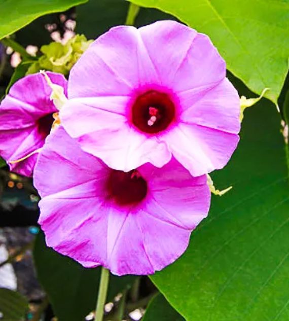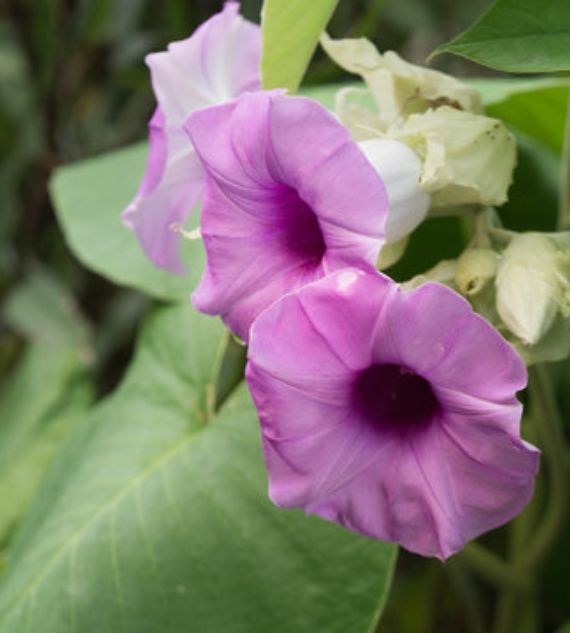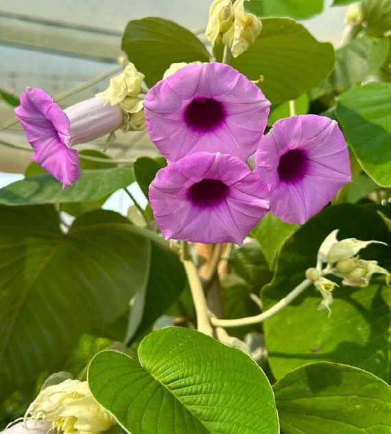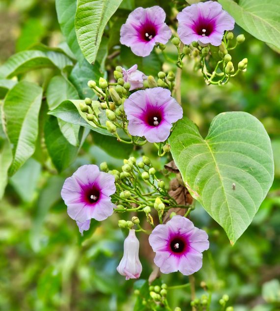 Argyreia nervosa, commonly known as Samudrapala, Bastantri, or Elephant Creeper, is a vigorous climber with large, heart-shaped leaves and striking purple, trumpet-shaped flowers. Traditionally used in Ayurvedic medicine, it thrives in warm climates and adds lush, ornamental beauty to gardens and fences.