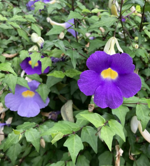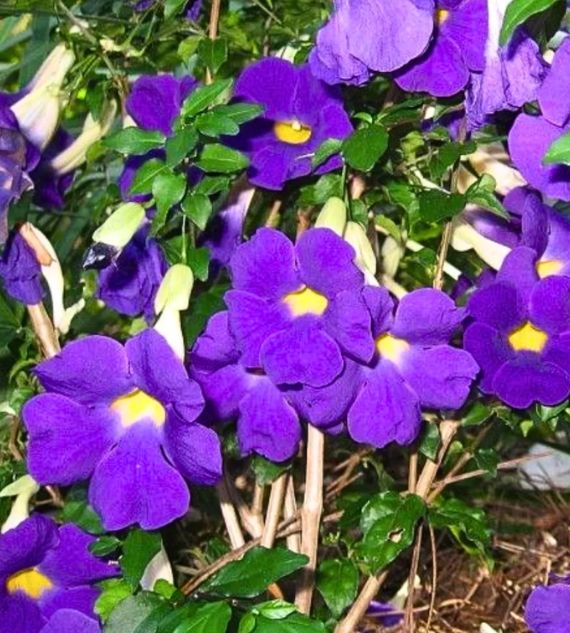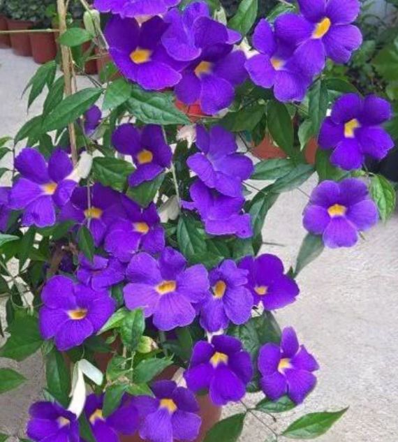 Thunbergia Blue is a fast-growing climber known for its striking blue, trumpet-shaped flowers and lush green foliage. Ideal for trellises, fences, and garden walls, it adds a vibrant pop of color and attracts butterflies, enhancing the beauty of any outdoor space.