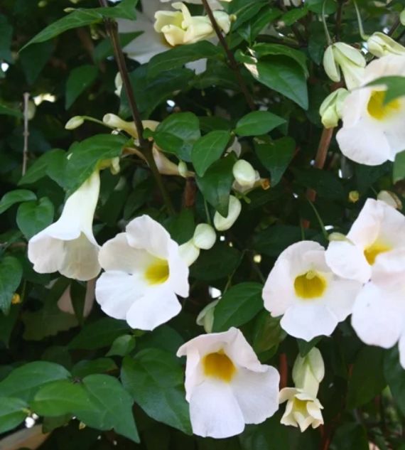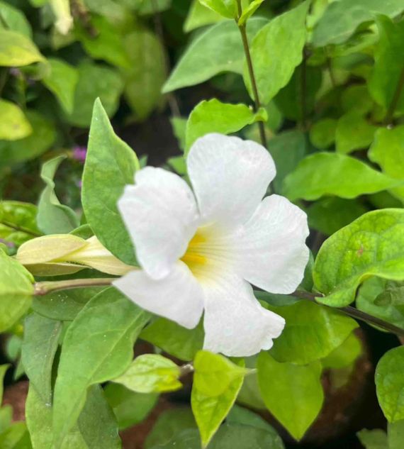 Thunbergia White is a charming flowering climber known for its pure white, trumpet-shaped blooms and lush green foliage. Fast-growing and easy to maintain, itโs perfect for decorating trellises, fences, and pergolas, adding a soft, elegant touch to any garden space.