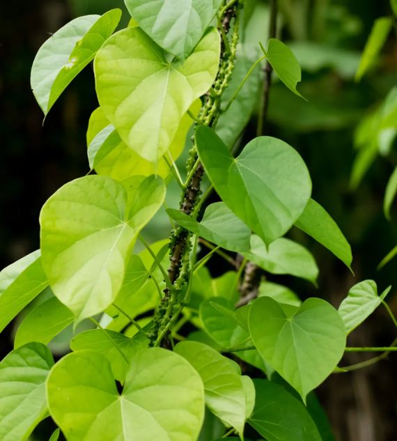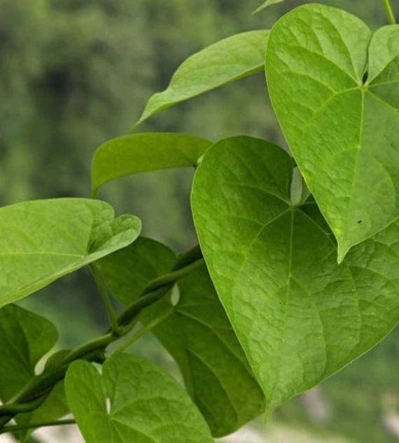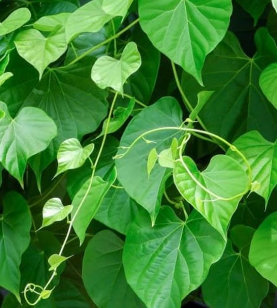 Tinospora cordifolia, commonly known as Heart-Leaved Moonseed or Tippa Tega, is a medicinal creeper with heart-shaped leaves and slender, twining stems. Widely used in traditional Ayurvedic medicine, it is valued for its immunity-boosting and detoxifying properties.