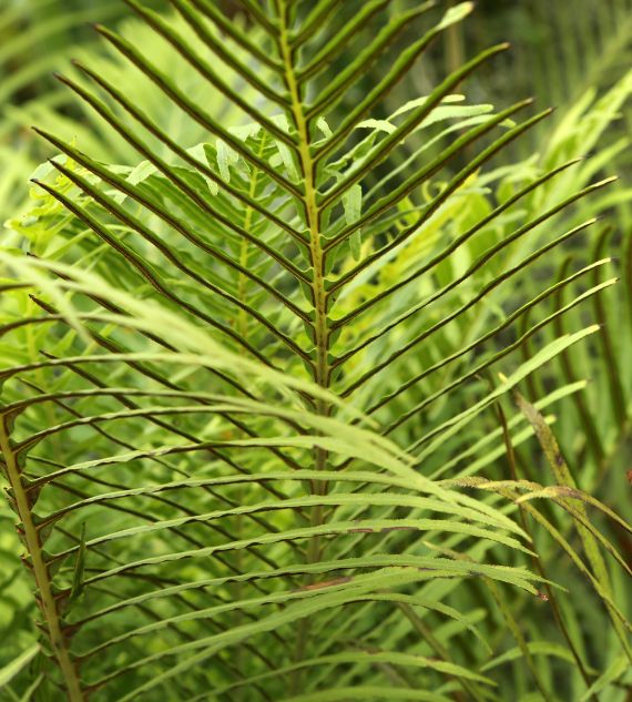 Pygmy Tree Fern (Blechnum gibbum) is a compact, slow-growing fern with a tropical palm-like appearance. It features a short, stout trunk topped with a rosette of bright green, arching fronds. Ideal for indoor spaces or shaded garden corners, this fern thrives in humid conditions with indirect light and consistently moist, well-drained soil. Its neat, symmetrical shape makes it a favorite for ornamental display.