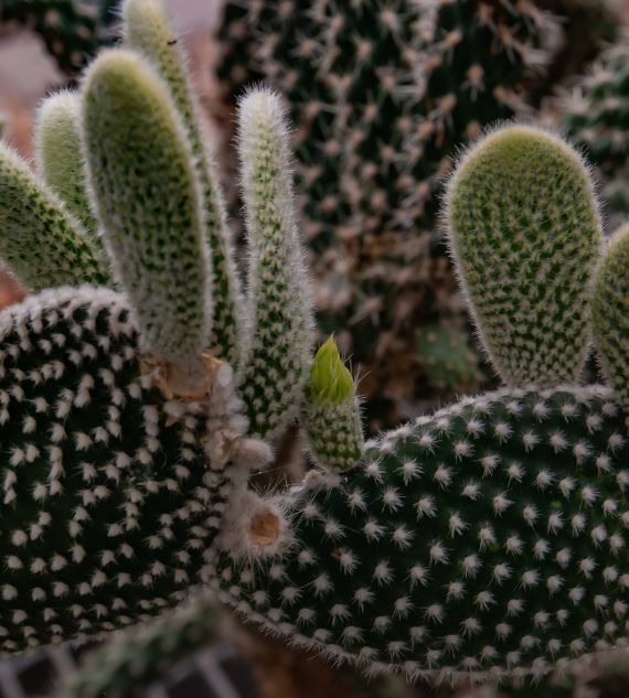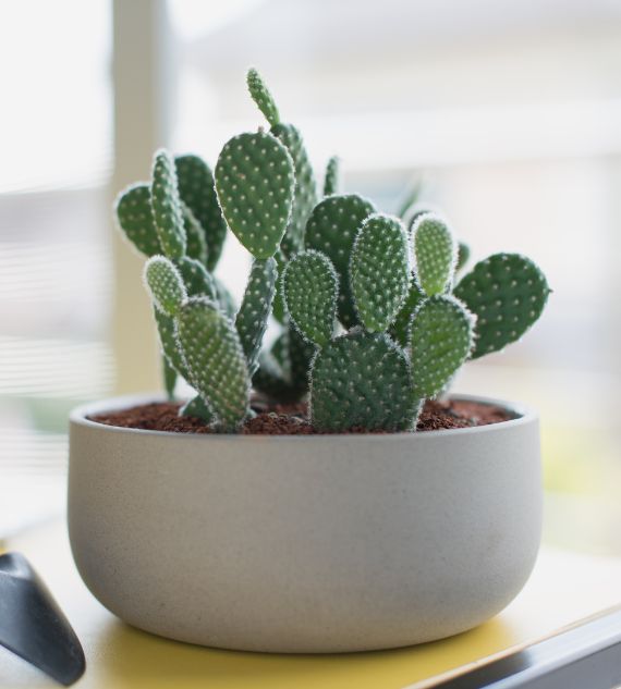 Bunny Ears (Opuntia microdasys) is a charming cactus known for its pad-like stems that resemble rabbit ears. Native to Mexico, it features golden or white glochids (tiny spines) instead of large thorns, giving it a soft appearance. This low-maintenance plant thrives in bright light and dry conditions, making it perfect for sunny indoor spots or desert-style gardens.
