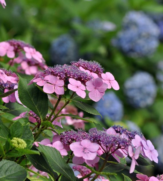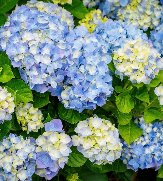 Hydrangea Macrophylla Hybrids are a group of ornamental shrubs known for their stunning, long-lasting blooms in shades of blue, pink, purple, or white. These hybrids often include both mophead and lacecap varieties, offering a range of flower shapes and colors. Ideal for gardens, borders, or containers, they thrive in partial shade and acidic to neutral soil, adding elegance and vibrant color to any landscape.