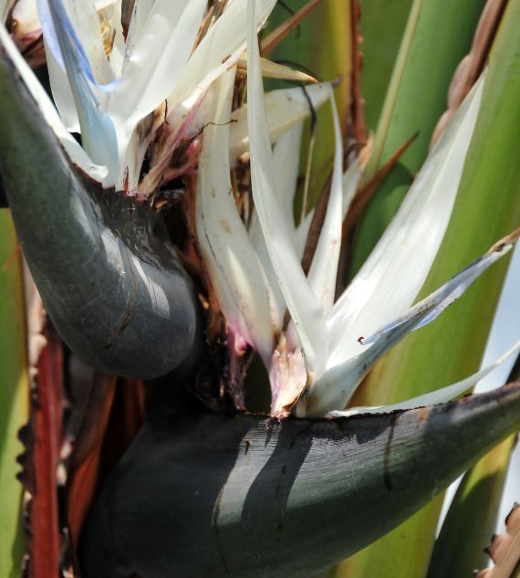 Strelitzia nicolai, commonly known as White Bird of Paradise or Natal Wild Banana, is a bold tropical plant with large, banana-like leaves and striking white and blue flowers. Perfect for creating a lush, exotic look in gardens or spacious indoor areas.