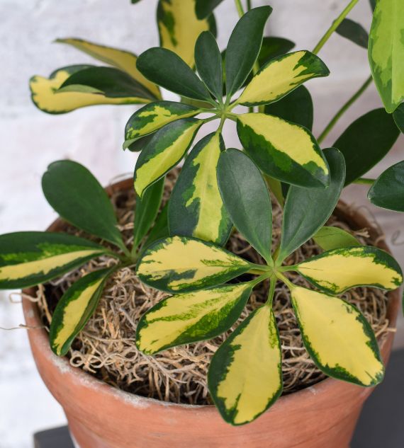 Schefflera Arboricola Variegata (also known as Schefflera Variegated or Variegated Dwarf Umbrella Tree) is a popular ornamental indoor plant known for its striking green and yellow/cream variegated foliage. It's easy to care for and thrives in bright, indirect light.