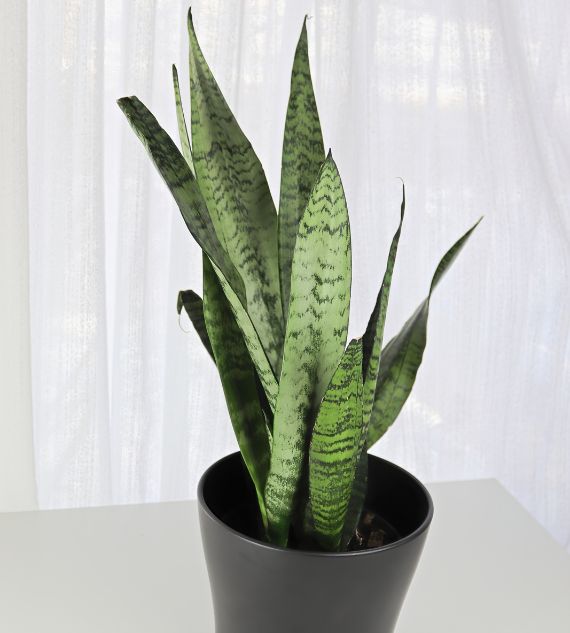 Sansevieria trifasciata 'Hahnii' (also called Mother-in-Law’s Tongue, Hahn's Sansevieria, or Dwarf Snake Plant) is a compact, rosette-forming variety of snake plant. Its short, upright leaves are dark green with horizontal gray-green bands, making it ideal for tabletops and small spaces. It’s low-maintenance and thrives in low to bright light.