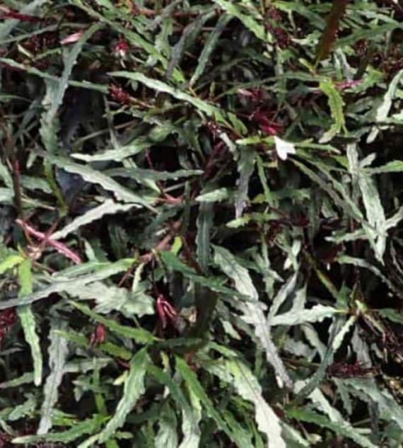 Narrow Leaf Hemigraphis (also known as Hemigraphis repanda, Ruellia repanda, or Epigraphis) is a striking tropical plant with narrow, wavy-edged, metallic green to purple leaves. Ideal for ground cover or containers in shaded, humid areas, it adds bold texture and color to indoor and outdoor gardens.