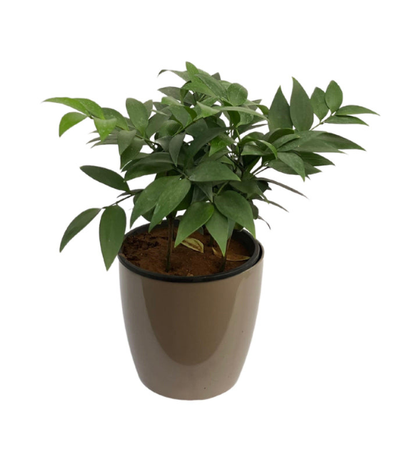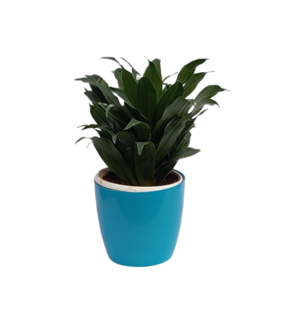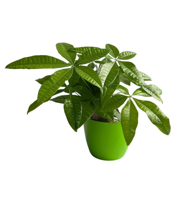 Maranta Leuconeura ‘Kerchoveana’, commonly known as the Prayer Plant, features striking green leaves with darker blotches. It folds its leaves upward at night, resembling praying hands, and thrives in low to medium light indoors.