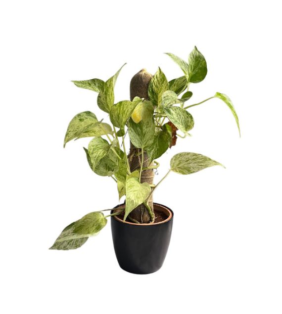 Devil’s Ivy, also known as Golden Pothos or Money Plant (Epipremnum aureum), features heart-shaped green leaves with golden variegation. It's a fast-growing, low-maintenance indoor vine that purifies air and thrives in low to bright indirect light.