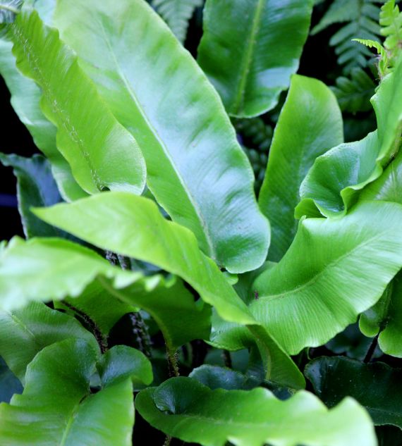Phyllitis scolopendrium, also known as Hart's Tongue Fern, features glossy, strap-shaped fronds that grow in a tidy rosette, adding a lush, sculptural look to shaded gardens. Wavy Margin Bird’s Nest Fern boasts bright green, rippled fronds that unfurl from a central rosette, giving a tropical feel and thriving in humid indoor or shaded outdoor spaces.