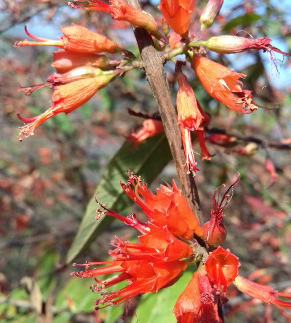 Woodfordia fruticosa, commonly known as the Fire Flame Bush, is a deciduous shrub native to South Asia. It produces vibrant, flame-like red or orange flowers, making it popular in landscaping. Additionally, it has traditional medicinal uses in Ayurveda for various ailments.