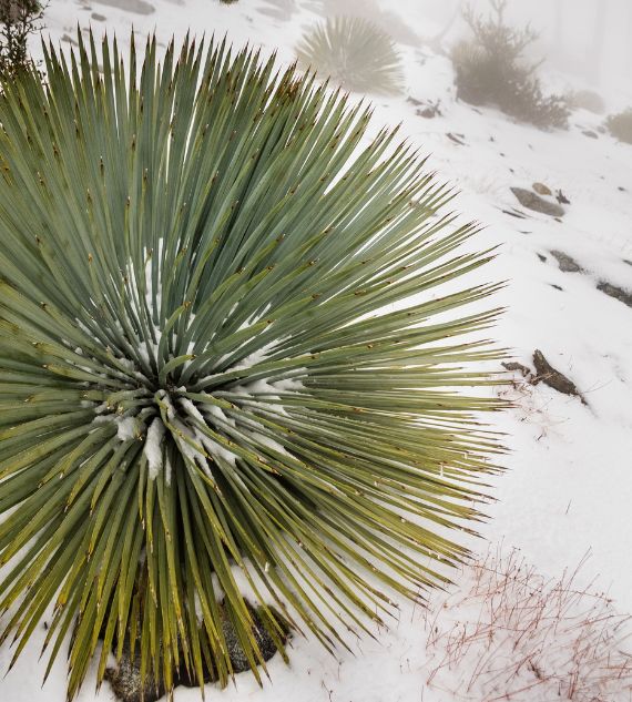 Yucca whipplei, also known as Our Lord's Candle, is a perennial, stemless plant native to the southwestern U.S. It features sharp, pointed leaves and tall flower spikes with clusters of white, bell-shaped flowers. Known for its dramatic flowering and drought tolerance, it's commonly used in xeriscaping and desert gardens.