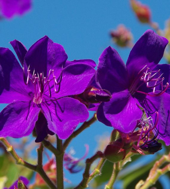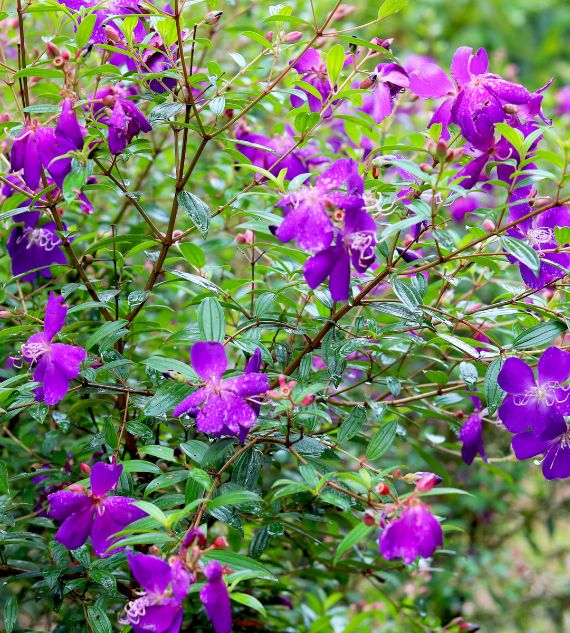 Tibouchina x Melastoma is a hybrid plant known for its striking, vibrant purple flowers and velvety leaves. A cross between species of the Tibouchina and Melastoma genera, it is prized for its ornamental value in gardens and landscapes. This hybrid thrives in tropical and subtropical climates and is admired for its long-lasting blooms and ability to attract pollinators.