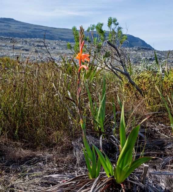 Trochetia boutoniana, the national flower of Mauritius, is a rare and endangered shrub known for its distinctive bell-shaped, reddish-orange flowers with white centers. It blooms from June to October and is found mainly on the slopes of Le Morne Brabant mountain. The plant holds cultural significance in Mauritius and is a symbol of resilience and natural beauty.